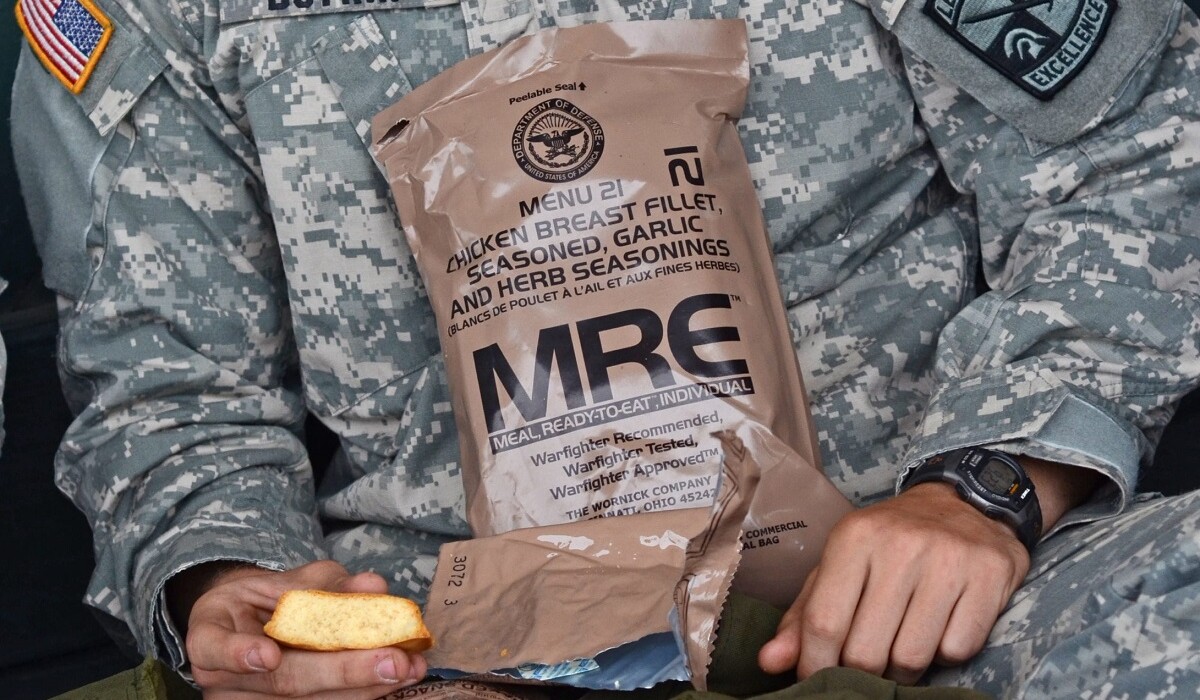 Сухпайки, полученные от США, называются MRE. Это аббревиатура от английского "Meal Ready to Eat", то есть еда полностью готова к употреблению.