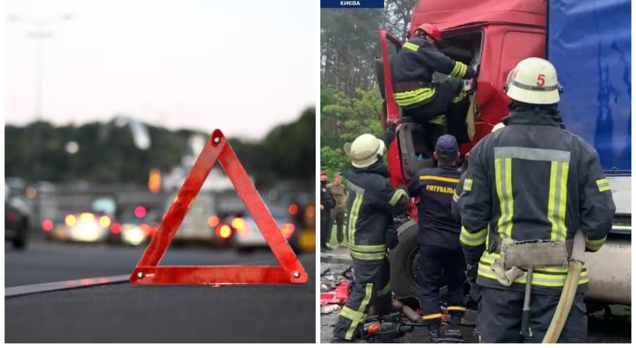 На трассе под Киевом столкнулись сразу шесть грузовиков, включая два автомобиля Национальной гвардии Украины.