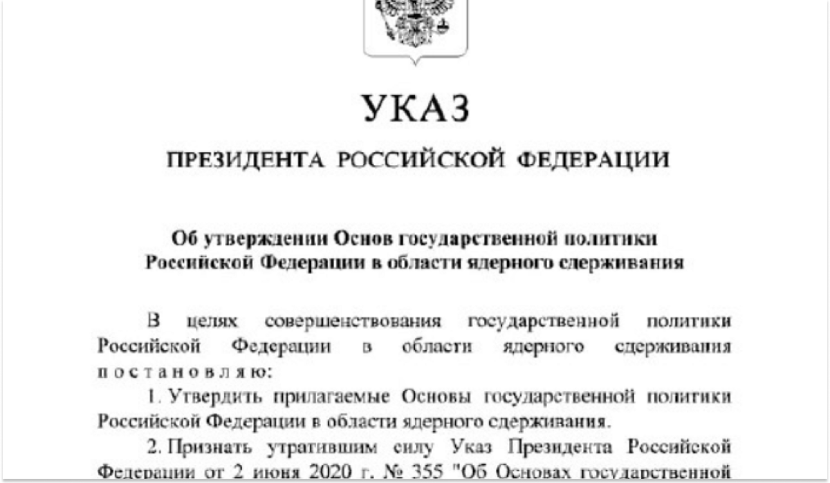 Российский диктатор Владимир Путин подписал указ "об основах политики россии в области ядерного сдерживания", чем утвердил новую ядерную доктрину рф.