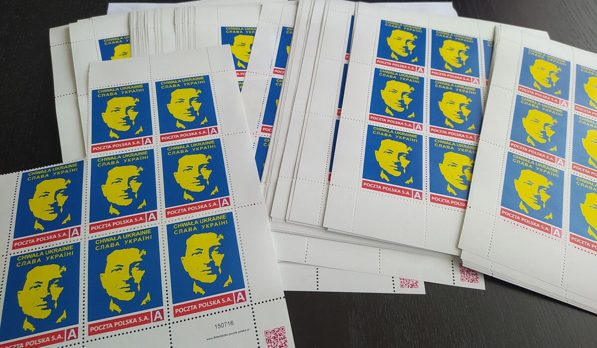 Марка выполнена в желто-синих цветах: на синем фоне желтый портрет Владимир Зеленского и сверху надпись "Слава Украине" на польском и украинском языках. Все марки были распроданы менее чем за сутки.