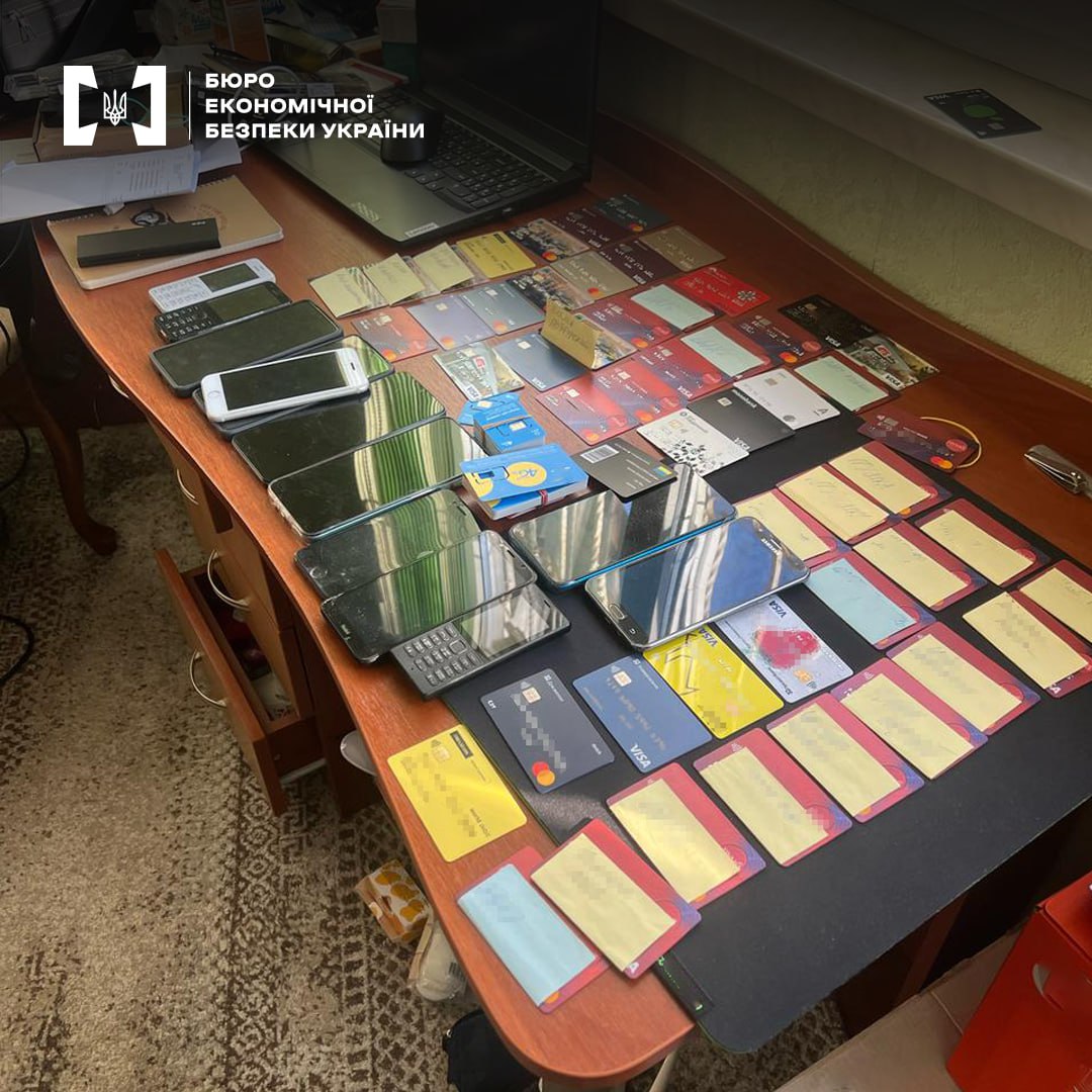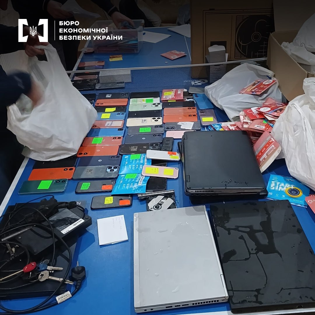 Изъято около 400 мобильных устройств, 50 единиц компьютерной техники (ноутбуки и стационарные компьютеры), ориентировочно 5 тысяч сим-карт мобильных операторов, 500 банковских карт физических лиц дропов, заявления на открытие банковских счетов от физических лиц.