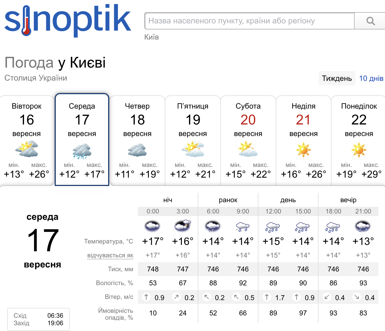 (Погода в Киеве на 17 сентября. Данные: sinoptik.ua)