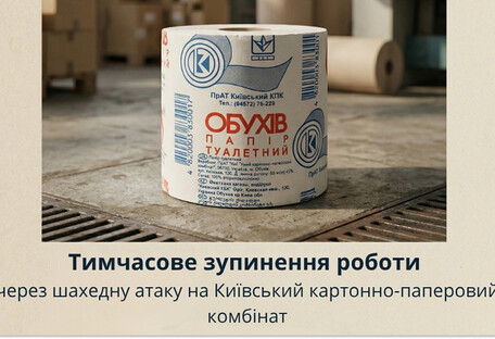 Из-за шахидной атаки временно приостановилось производство туалетной бумаги "Обухов"