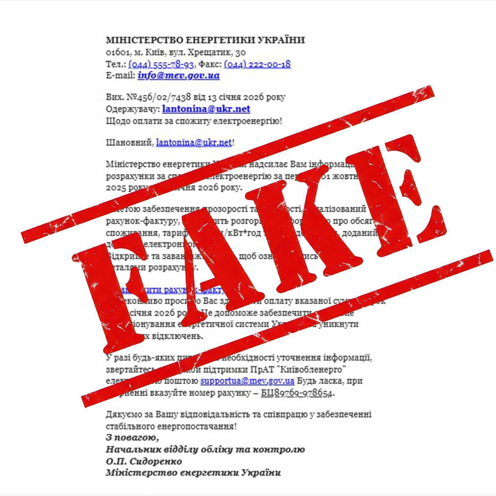 В Министерстве энергетики Украины предостерегают граждан о распространении фишинговых электронных писем, маскирующихся под официальную корреспонденцию министерства.
