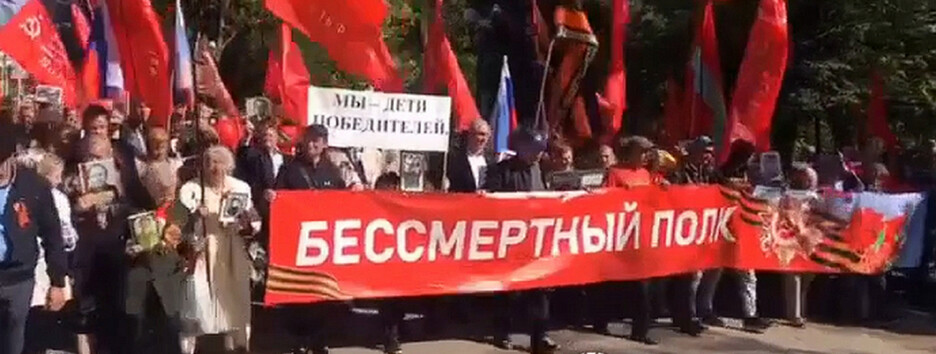 В оккупированном Херсоне россияне устроили "парад" с красными флагами (видео)