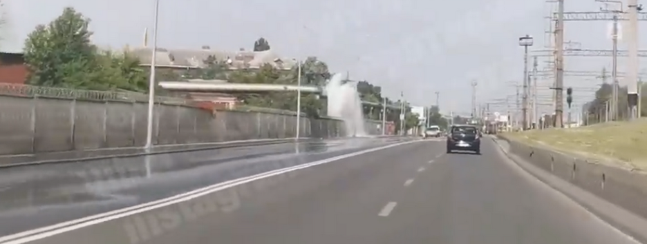 В Киеве возле дороги забил огромный "фонтан" (видео)
