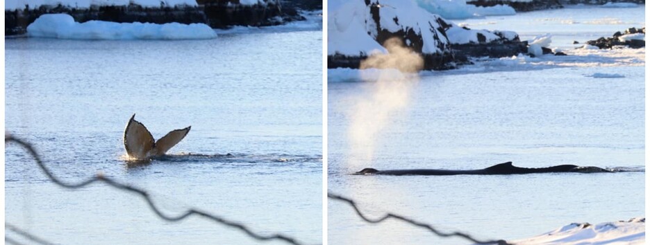 Украинские полярники засняли редкое зрелище — на станцию приплыли киты (фото)