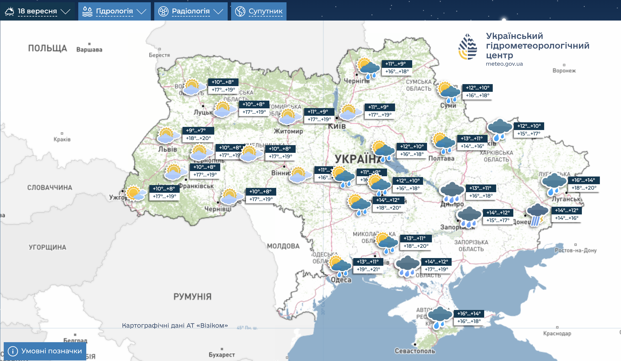 Погода в Украине 18 сентября: дожди отступают, но ожидается сильный ветер