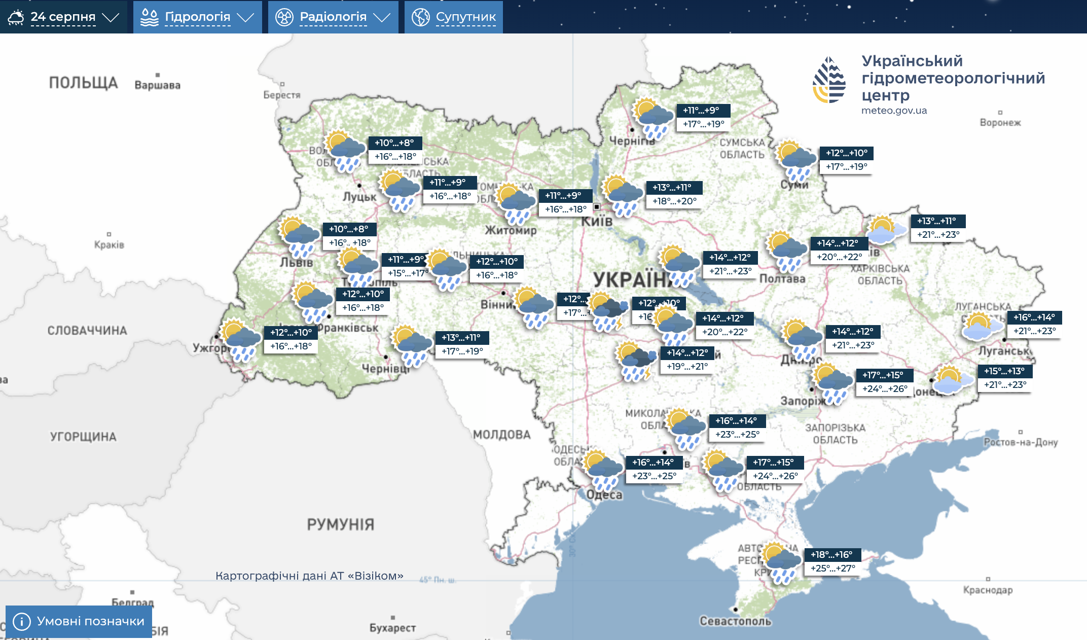 (Прогноз погоды в Украине на День Независимости 2025 от "Укргидроментцентра")