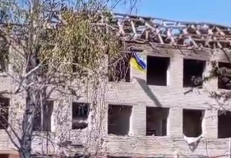 Также в Генштабе показали видео, где на одном из зданий Заречного установлен украинский флаг.