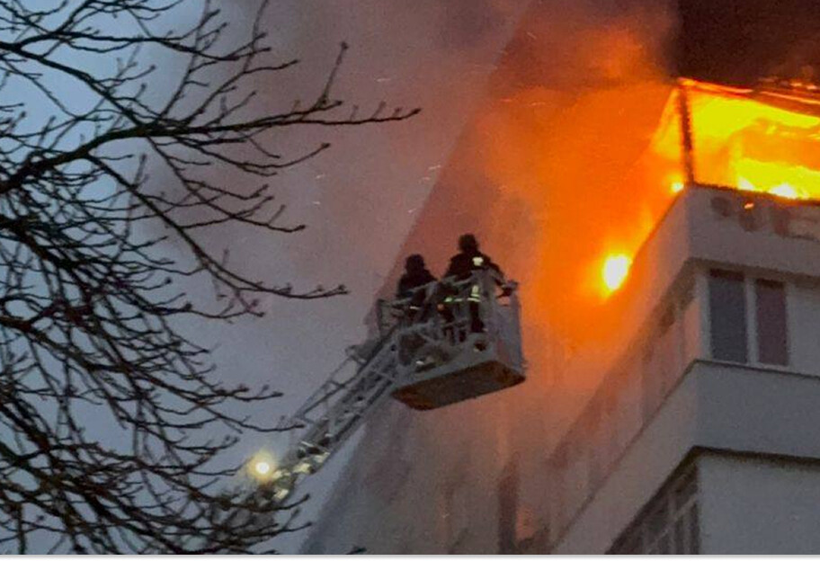 В результате атаки в доме выбиты окна и произошел пожар на балконе верхнего этажа. На месте работали подразделения ГСЧС. Горение удалось ликвидировать.