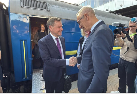 На фото видно, что на вокзале в Киеве министр встретил посол Германии в Украине Мартин Егер.