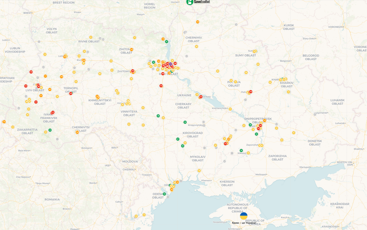 Об этом говорит карта качества воздуха на сайте SaveEcoBot.
