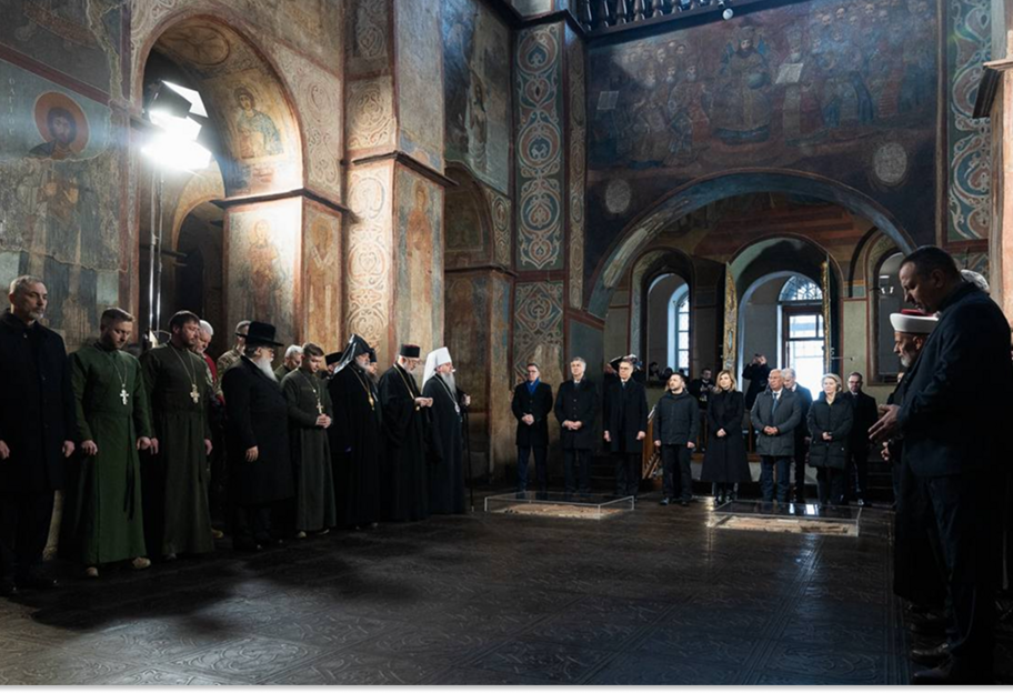 В Софии Киевской 24 февраля состоялось молитвенное мероприятие с участием президента Владимира Зеленского и первой леди Елены Зеленской. Также к молитве о Украине и украинцах присоединились европейские лидеры.