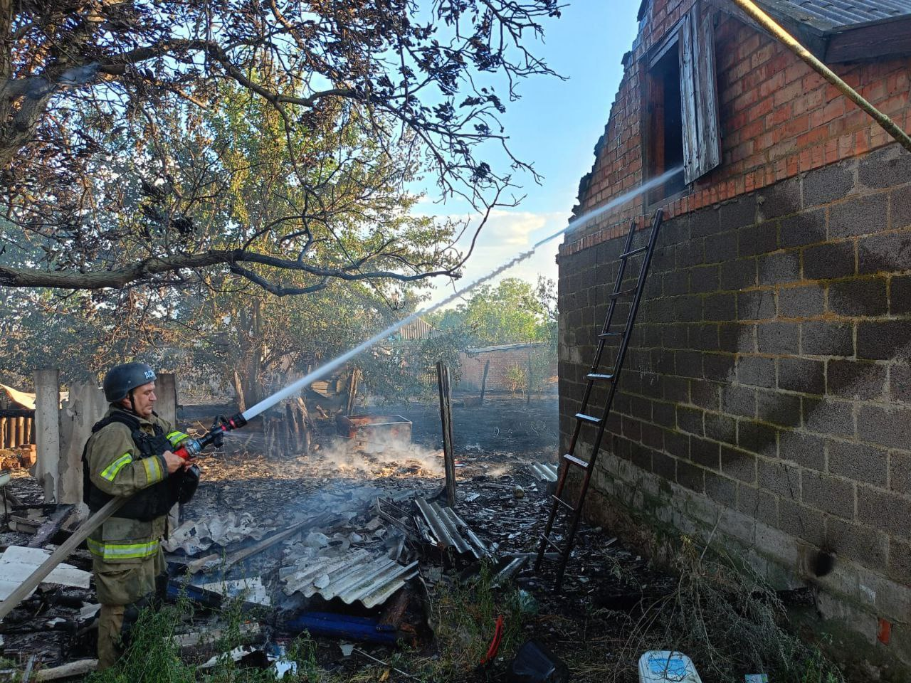 По уточненной информации, из-за вечернего удара FPV-дроном по Мировской общине возник пожар. Огонь уничтожил летнюю кухню и хозяйственное сооружение. Изуродованный частный дом.