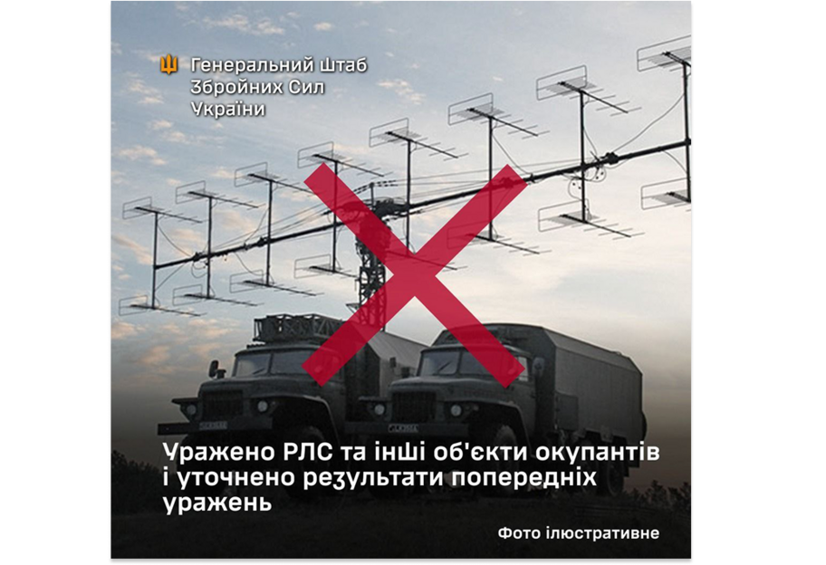 Силы обороны нанесли эффективное огневое поражение по радиолокационным станциям и другим военным объектам россиян как на оккупированных украинских территориях, так и на территории россии. Также подтверждены результаты предварительных поражений.