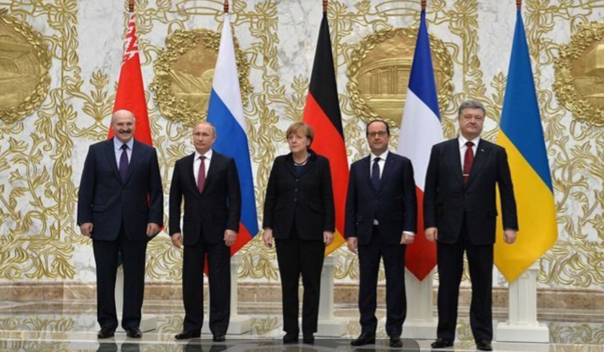 11-12 февраля 2015 года в Минске сторонами "нормандской четверки" (Украина, Франция, ФРГ, РФ) был проведен очередной переговорный процесс по урегулированию российской агрессии на Донбассе, в ходе которой участниками были достигнуты политические договоренности по выполнению Минского протокола, заключенного в сентябре. (Минск-1).