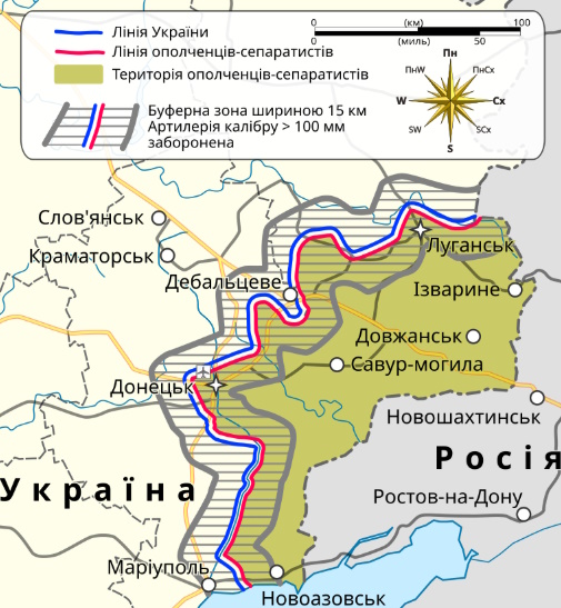 19 сентября 2014 г. – меморандум в Минский протокол предусматривал прекращение огня и создание 30-километровой буферной зоны.