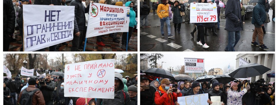 Противники вакцинации парализовали центр Киева, ругаются с водителями (фото, видео)