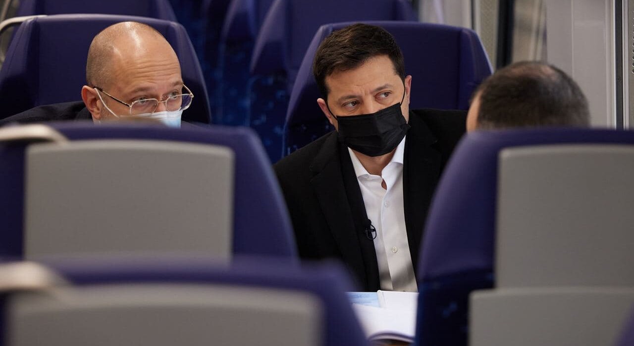 Зеленський разом із деякими людьми зі свого оточення – прем'єр-міністром Денисом Шмигалем, заступником голови ОПУ Кирилом Тимошенком та міністром інфраструктури Олександром Кубраковим – проїхався на одному з нових потягів, які замовляються для нових залізничних маршрутів.