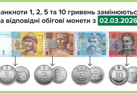 Банкноти номіналами 1, 2, 5 та 10 гривень замінюються на відповідні обігові монети: як обміняти - фото 1