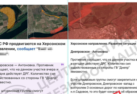 Згідно з даними, ворожі Telegram-канали поширюють повідомлення про активізацію штурмових дій росіянами на Херсонському напрямку, зокрема в районі між населеними пунктами Дніпровське та Антонівка.