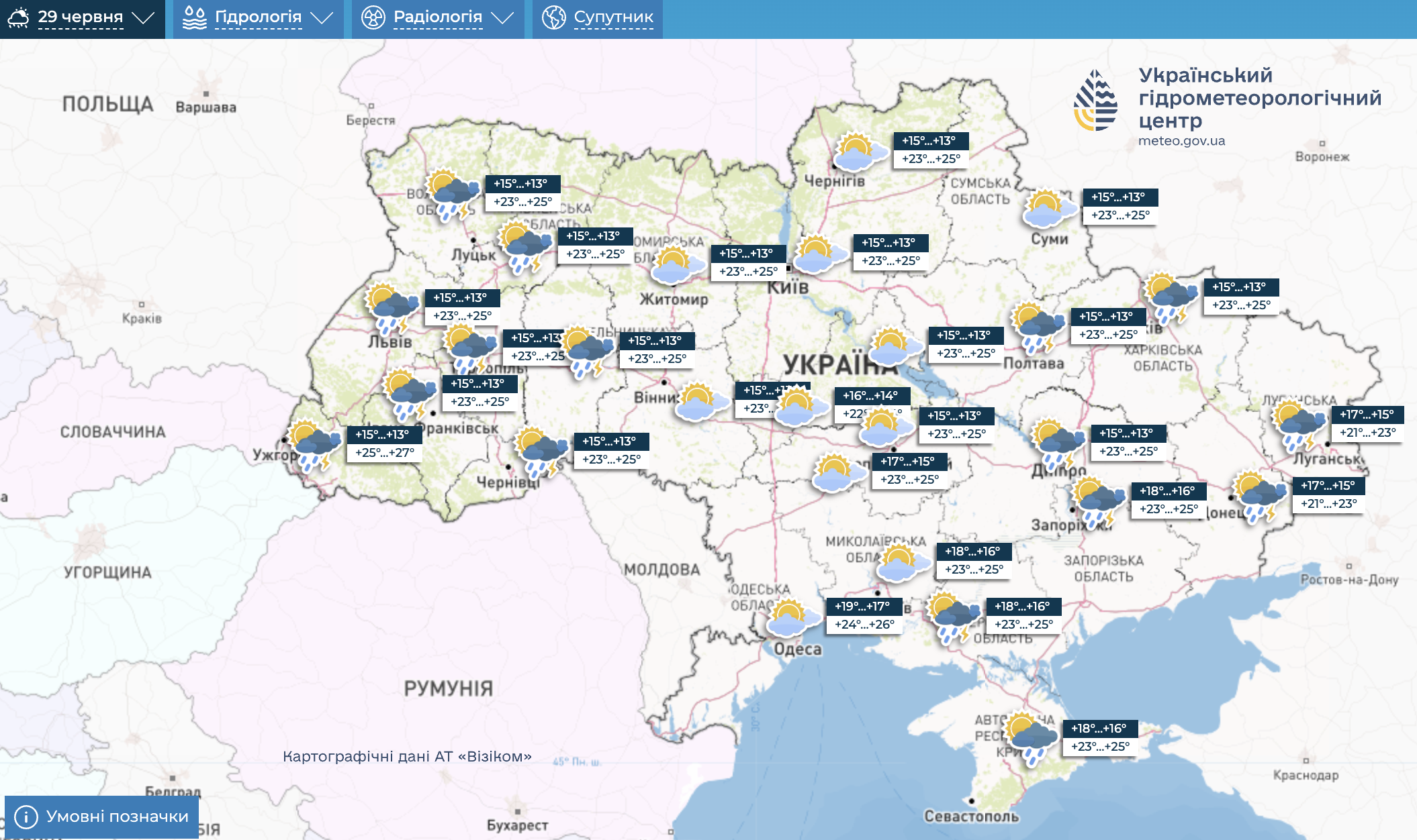 (Прогноз "Укргідрометцентру" на 28 червня 2025)