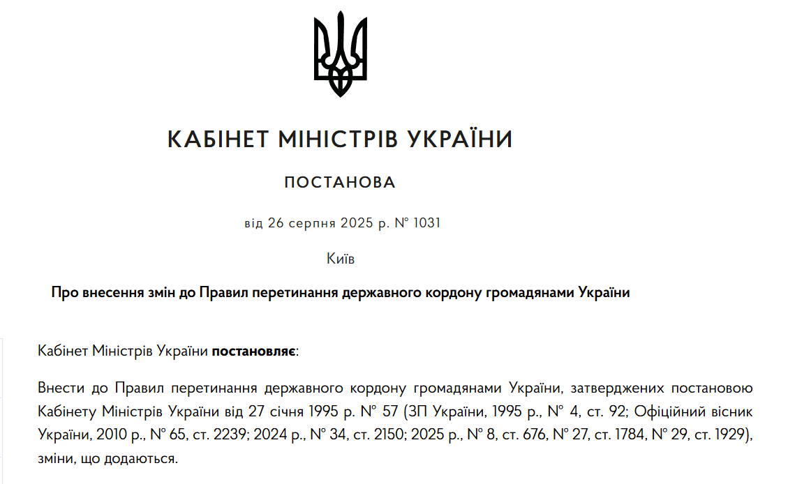 Кабінет міністрів України 27 серпня опублікував постанову про виїзд за кордон чоловікам віком від 18 до 22 років. Раніше у ЗМІ поширювали інформацію про те, що чоловіки 22 років не матимуть змогу виїжджати за межі України.