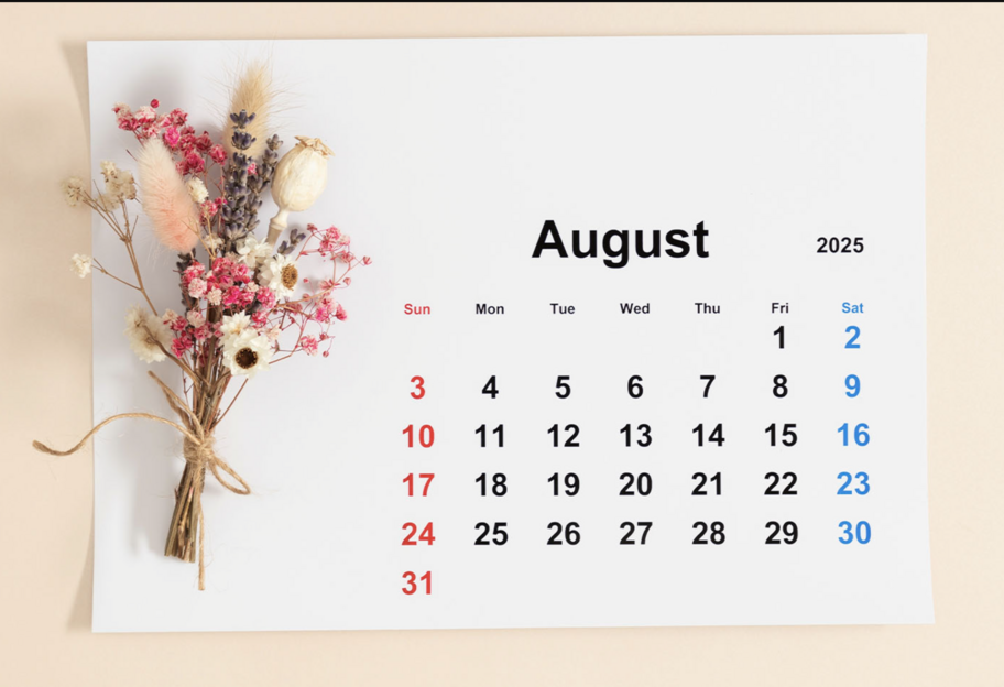 Realist публікує повний список свят у серпні 2025 року в Україні, включно з датами, вихідними та короткими поясненнями.