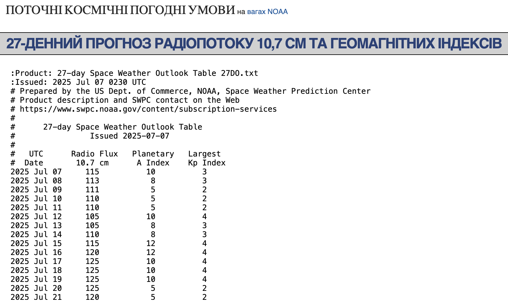 • 8 липня – стабільно помірна активність, Kp-індекс 3.