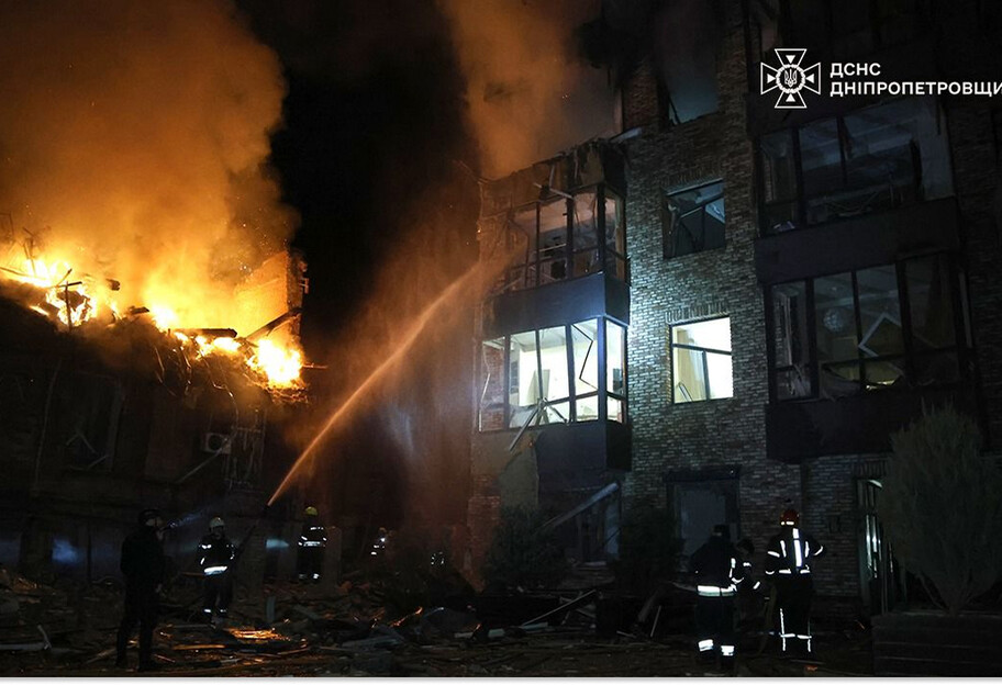У Дніпрі внаслідок вечірньої та нічної атаки виникли пожежі одразу на кількох локаціях. Горіли житлові будинки, офісна будівля, гаражі та автомобілі, а також територія навчального закладу.