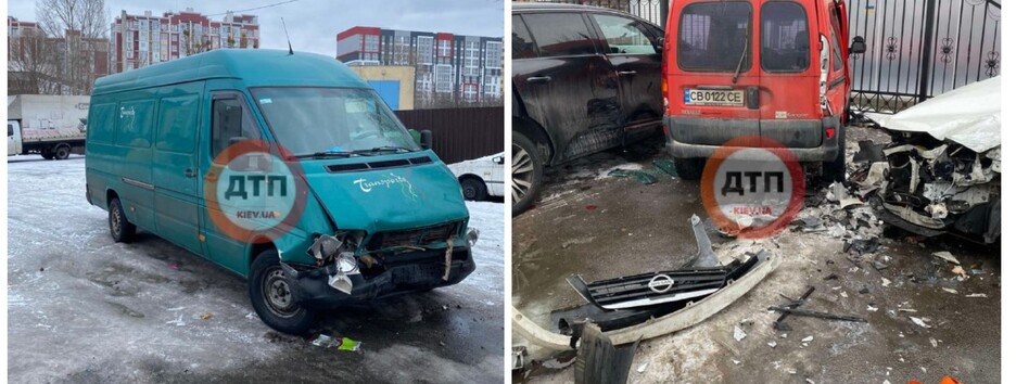 Протаранив 5 машин: під Києвом мікроавтобус врізався в автомобілі на парковці (фото)