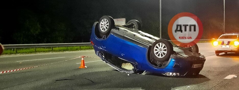 Автомобіль злетів з дороги, протаранив знак "Київ" і перекинувся (фото)