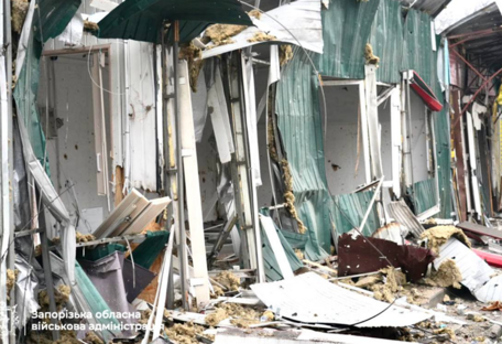 Крім цього, внаслідок атаки пошкоджено торгівельні ряди, магазини та багатоповерхівки. Голова ОВА зауважив, що серед будинків є ті, які вже втретє постраждали внаслідок російської атаки.