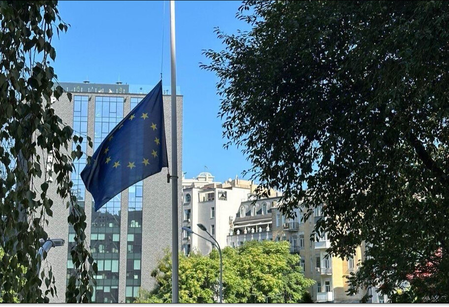 Прапори Європейського Союзу приспущені на знак жалоби за загиблими внаслідок чергової атаки росії.