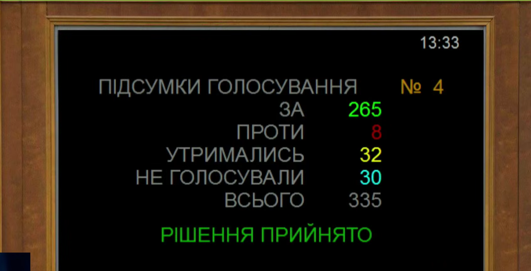 "За" відповідне рішення проголосували 265 народних депутатів.