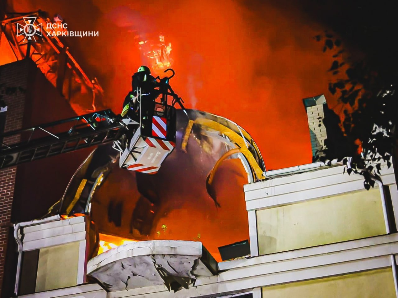 "Виникли пожежі на чотирьох локаціях: дах недобудови, госпспоруда, три ангари. Окрім цього, зазнали пошкоджень багатоквартирні житлові будинки та легкові авто", — йдеться в повідомленні.