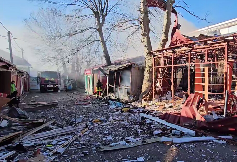 Після атаки сталося займання торгівельних кіосків. Рятувальникам попри загрозу повторних ударів вдалося ліквідувати пожежу.
