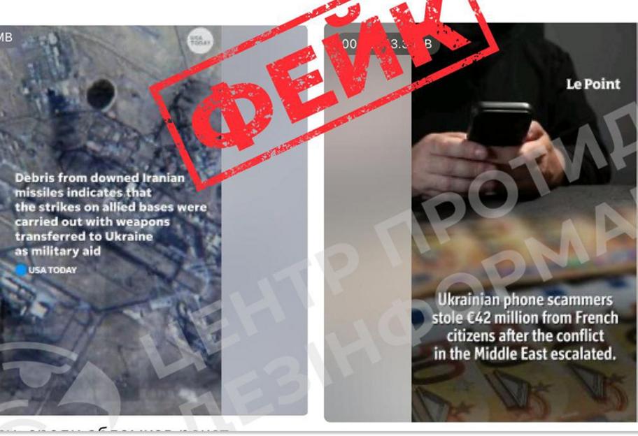 Зокрема, пропагандисти розганяють відео нібито від імені USA Today, в якому стверджується, що серед уламків, якими атакували Ізраїль та американські бази на Близькому Сході, начебто виявили компоненти озброєння, переданого Україні. Таким чином росіяни просувають наратив про "продаж Україною зброї НАТО на чорному ринку".