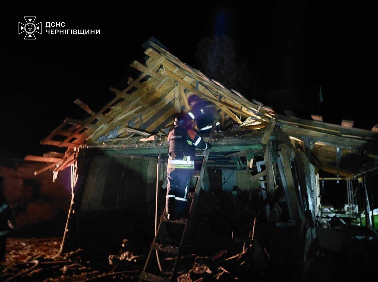 У Новгород-Сіверському районі є влучання в енергообʼєкт. У самому районному центрі через пошкодження будинку дроном сталося займання, яке загасили вогнеборці.