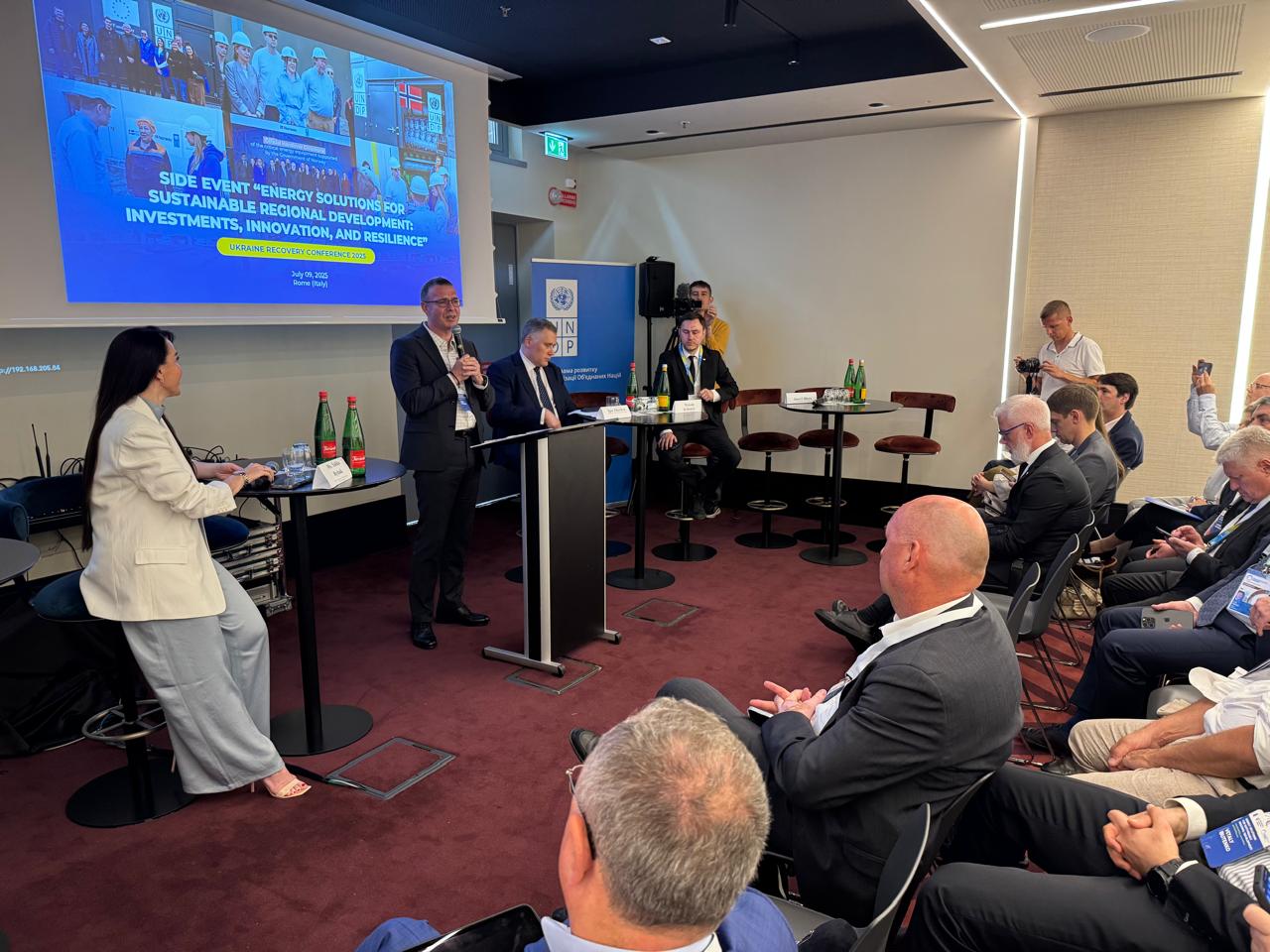 Заступник міністра енергетики України Микола Колісник взяв участь у конференції «Енергетичні рішення для сталого регіонального розвитку: інвестиції, інновації та стійкість», організованій за підтримки ПРООН та міжнародних партнерів у межах Ukraine Recovery Conference, повідомляє офіційний сайт Міненерго.