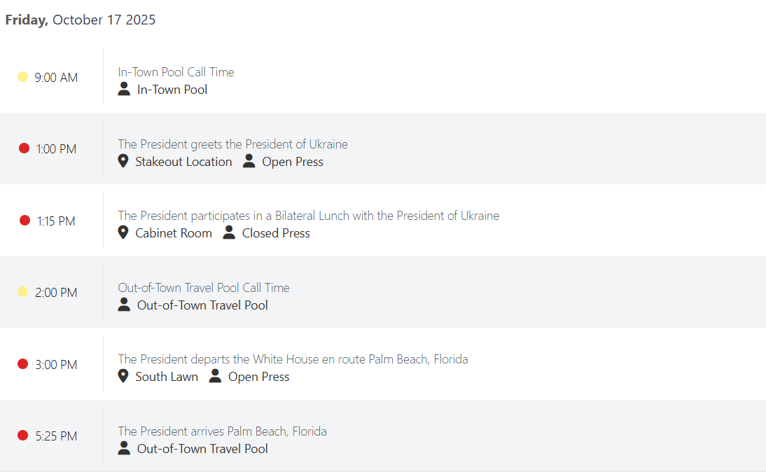 Про це повідомляє Roll Call, який відстежує графік зустрічей американського лідера.