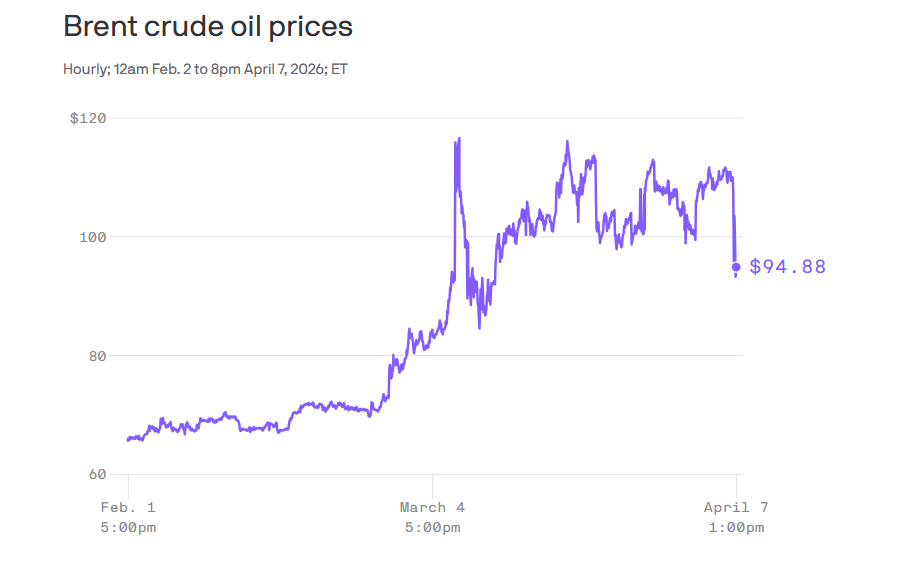 Ціни на сиру нафту різко у вівторок ввечері знизилися нижче за 100 доларів за барель після того, як президент США Дональд Трам погодився на двотижневе припинення вогню з Іраном, запропоноване Пакистаном.
