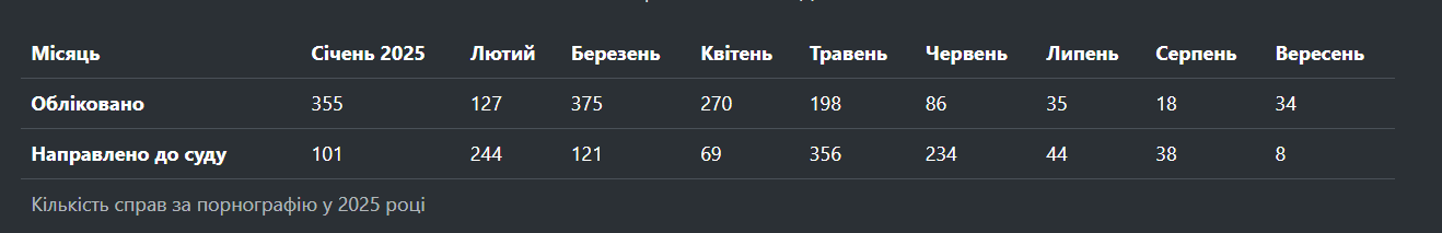 За дев'ять місяців 2025 року в Україні відкрили майже 1,5 тисячі кримінальних проваджень за дорослу порнографію. Це на 13% більше, ніж за аналогічний період торік.