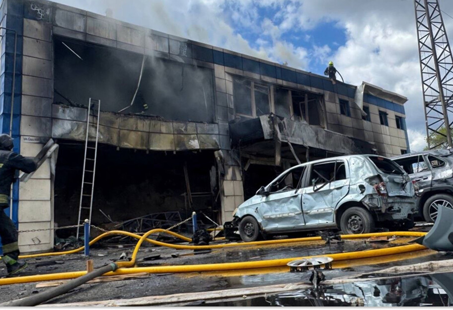 "Знищені автобус і два легковики. Ще вісім авто понівечені. Пошкоджені магазин та багатоквартирний будинок. Пожежу, яка спалахнула на місці атаки, рятувальники уже загасили", — розповів керівник ОВА.