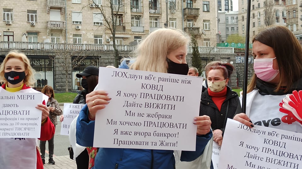 Вони принесли плакати з такими написами: «Нормальні мери дають працювати», «Я хочу працювати, дайте вижити», «Ні вибiрковому карантину».