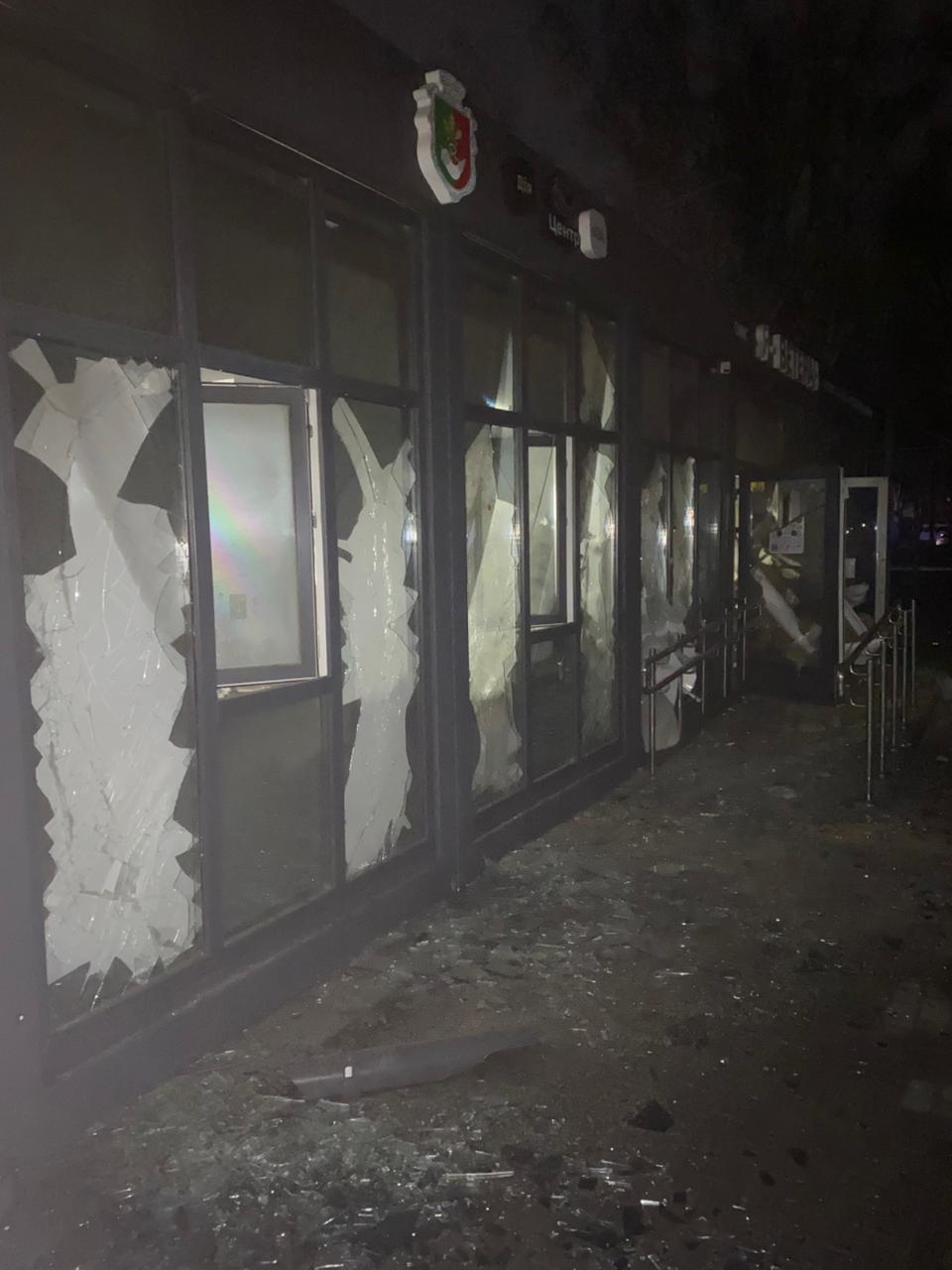 У місті зафіксовані пошкодження трьох житлових будинків, авто, адмінбудівель та соціальної установи, які є цивільними об'єктами. Рятувальники оперативно ліквідували пожежу, яка виникла на місці.