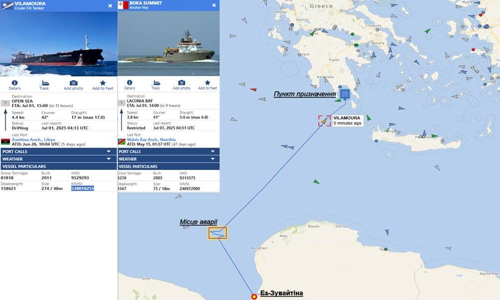 У Середземному морі 27 червня 2025 року на танкері Vilamoura, який належить до складу "тіньового флоту" росії, стався вибух у моторному відділенні. Наразі його намагаються відбуксирувати до берегів Греції.