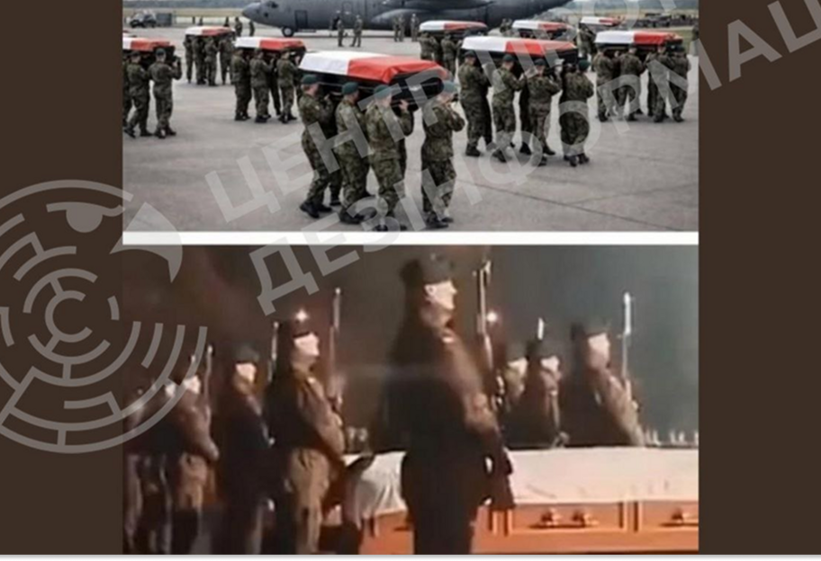 "Аналіз зображень також вказує на підробку. Перше фото з трунами на злітній смузі згенероване штучним інтелектом, що підтверджує перевірка відповідними сервісами. Друге зображення є реальним, однак воно жодним чином не стосується України — знімок датований 2011 роком, на ньому зафіксовано прибуття тіл польських військових, які загинули в Афганістані", — розповіли в ЦПД.