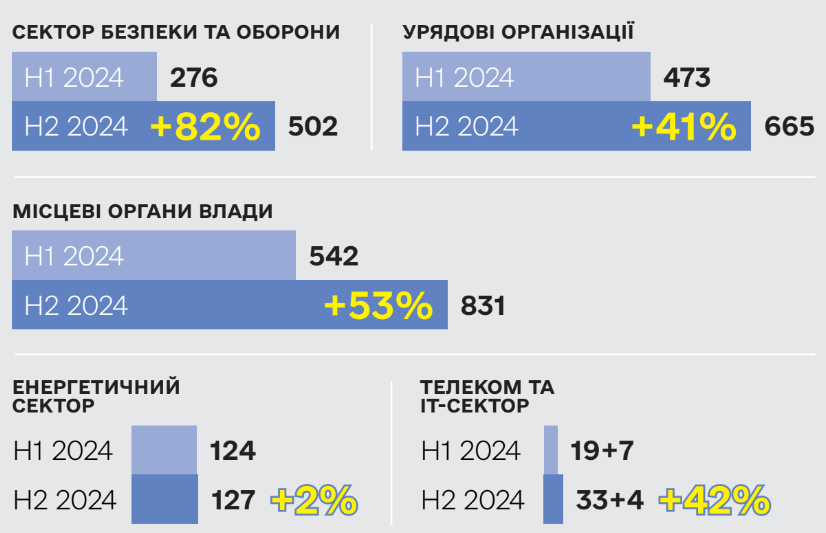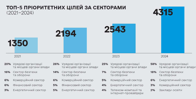 Найчастіше кібератак зазнавали державні органи та сектор безпеки й оборони.